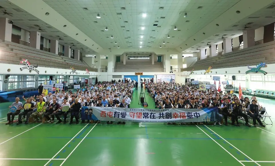 臺中市政府警察局第六分局 9 月 13 日在西屯區永安國小舉辦「守望相助工作示範觀摩演練」,以「西屯有愛 守望常在 共創幸福臺中」為主題,由局長吳敬田親自主持,邀集本市守望相助隊參與,西屯區 9 支隊伍進場接受校閱,展現團隊士氣。